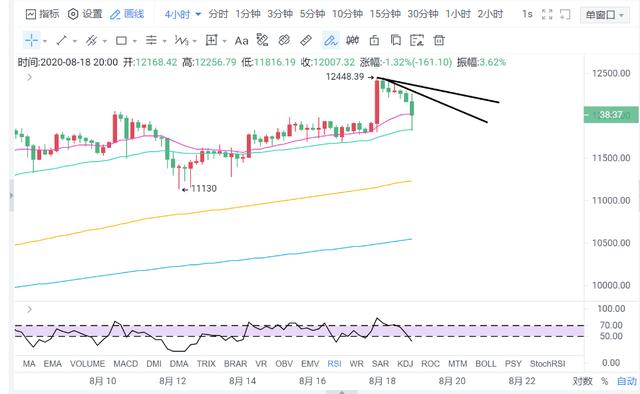 BTC / USDT货币对的价格在晚间19:00到22:00,从12300美元跌至11830美元的盘中低点,而前期12000美元的关口在艰难的突破之后,市场情绪普遍看多,而晚间12000却如纸糊的一般一捅即破。