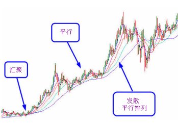 均线的本质是反映一段时间的平均持股成本。市场参与者往往以赚和赔来评价自己的交易,这样买入成本就成了指导投资者交易的重要指标。在一个上涨趋势中,价格回落到均线附近时,投资者觉得有利可图。市场中的买入力最就会增加,从而使价格得到强力支撑,均线对价格也表现出支撑作用。在一个下降趋势里,当价格反弹接近均线时,投资者会把握价格冲高的机会,尽快卖出手中股票以避免或减少亏扭,从而导致价格遇阻回落,这也就是均线的压制作用。