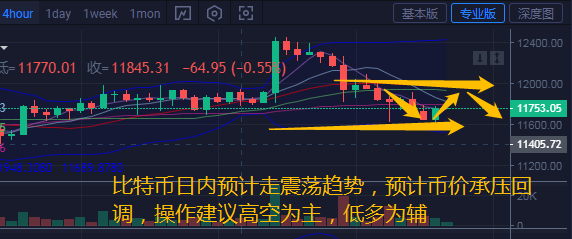 比特币昨日币价一直回调至午间两点左右,行情回踩至11615附近后在11800附近震荡。今日凌晨四点币价刷新新低至11571附近,目前币价反弹在11769附近。