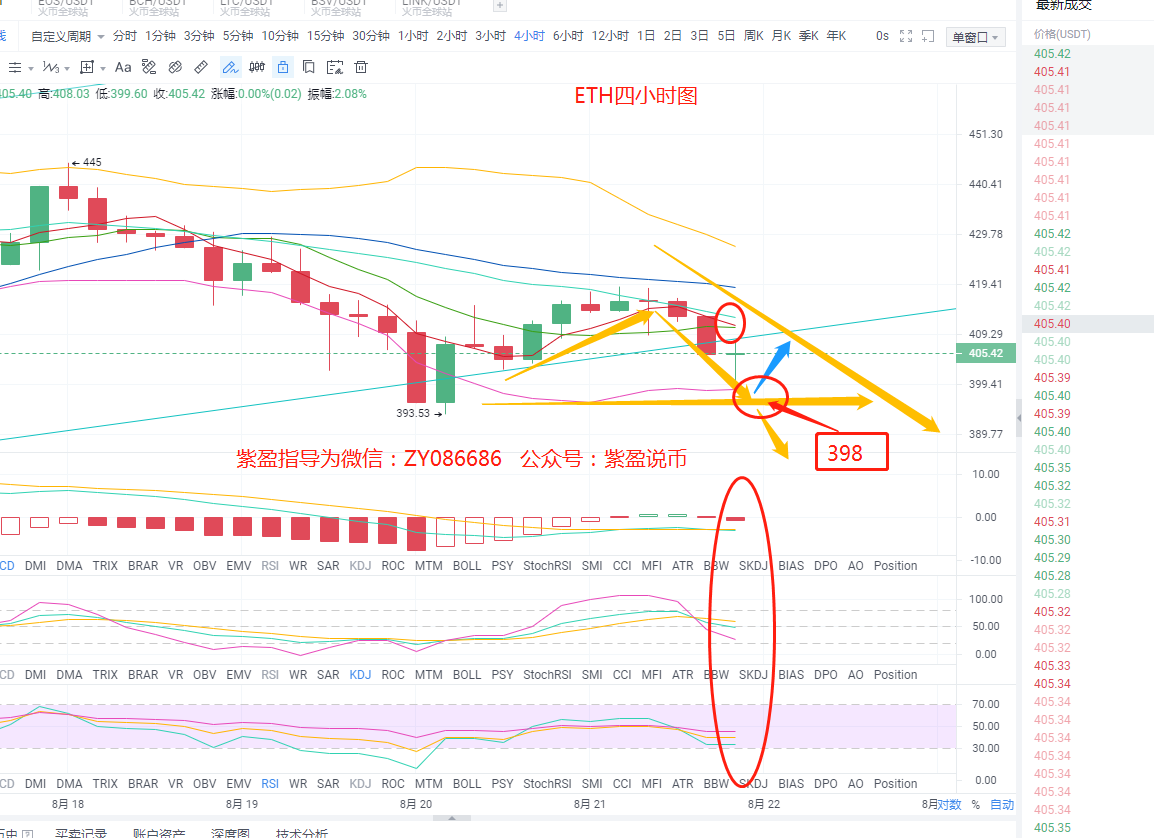 紫盈说币:8.21比特币/以太坊晚间分析策略多次跌破400夜间恐将上演跳水行情