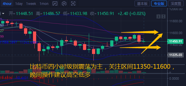 从四小时线图上看,布林带缩口向前运行,币价稳定在中轨上方运行,五日均线上穿十日均线运行。附图中MACD快慢线金叉向上运行在零轴附近,绿色动能柱放量,RSI三线走平在48水平线附近。从盘面来看,日内行情向上突破上轨至最高点11580后回踩,晚间行情若能够上行企稳11500上方,那么还有进一步上行趋势.汐柔预计行情晚间震荡为主。