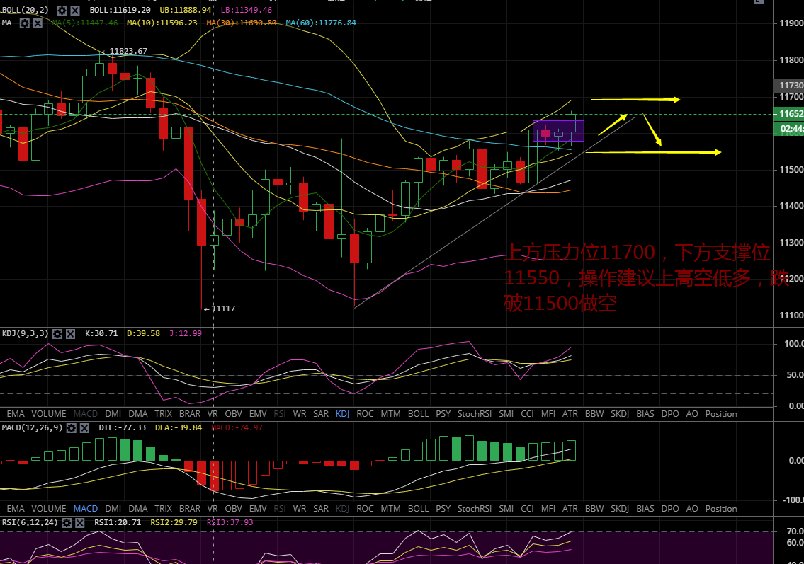 策略二:下行11560附近多单,目标11660,止损100
