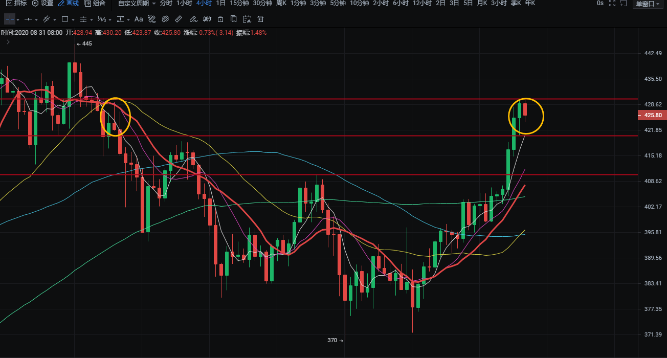 1:420附近多,止损415,目标425-430