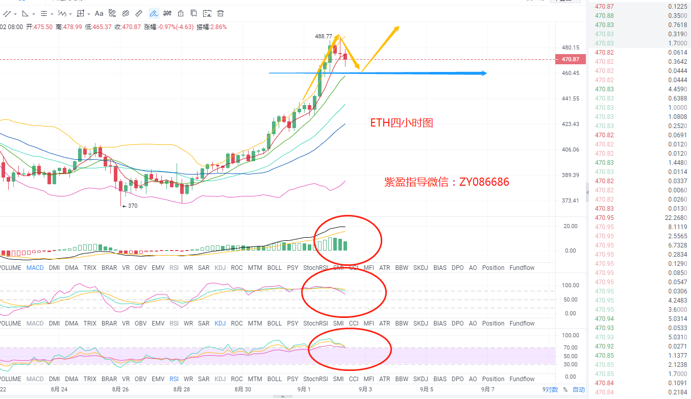 以太坊近两天强势拉升不断刷新新高。昨天日内行情拉升突破480位置最高点至488.77。今天早间小幅度回踩目前币价在470附近运行。