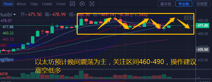 综上:从盘面来看,汐柔认为短期行情有回踩趋势,晚间大趋势还是震荡为主。关注下轨支撑460位置,上方关注490位置压制,操作建议低多为主,高空为辅。