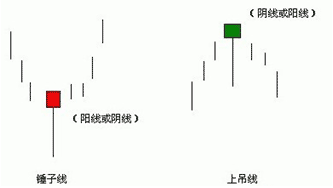 此类图线具有明显的特点,上吊线的上影线较长,而实体较小,并且在其整根价格区间里,实体处于接近低端的位置上。这种K线中如果出现在上涨趋势中,那么它就是上涨趋势即将结束的信号,如果出现在下跌行情之后,就表明当前的市场下行趋势或许已结束。在这种情况下此种K线称为上吊线。
