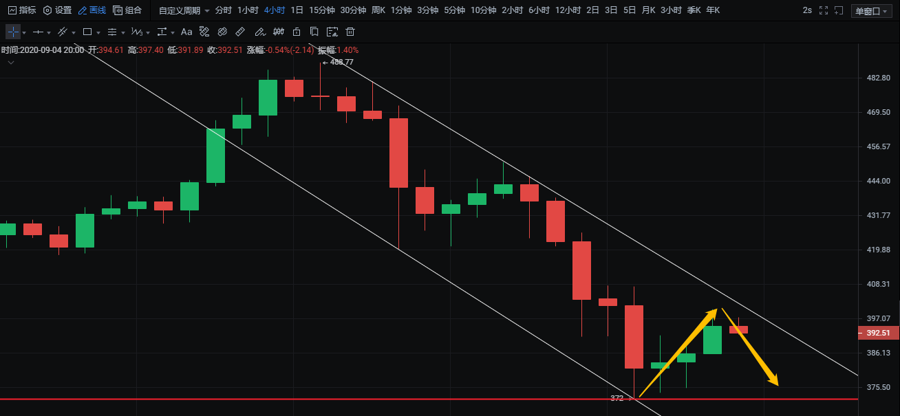 以太坊四小时级别来看价格跟随比特币联动下跌,行情于上轨跌至下轨,跌幅100多个点。布林带呈张口运行,短期来看没有止跌迹象。幅图指标MACD于0轴下方死叉运行,KDJ指标三线向上散发,RSI指标三线拐头向下。上方压力位400-410,下方支撑位370。操作上高空为主,低多为辅。