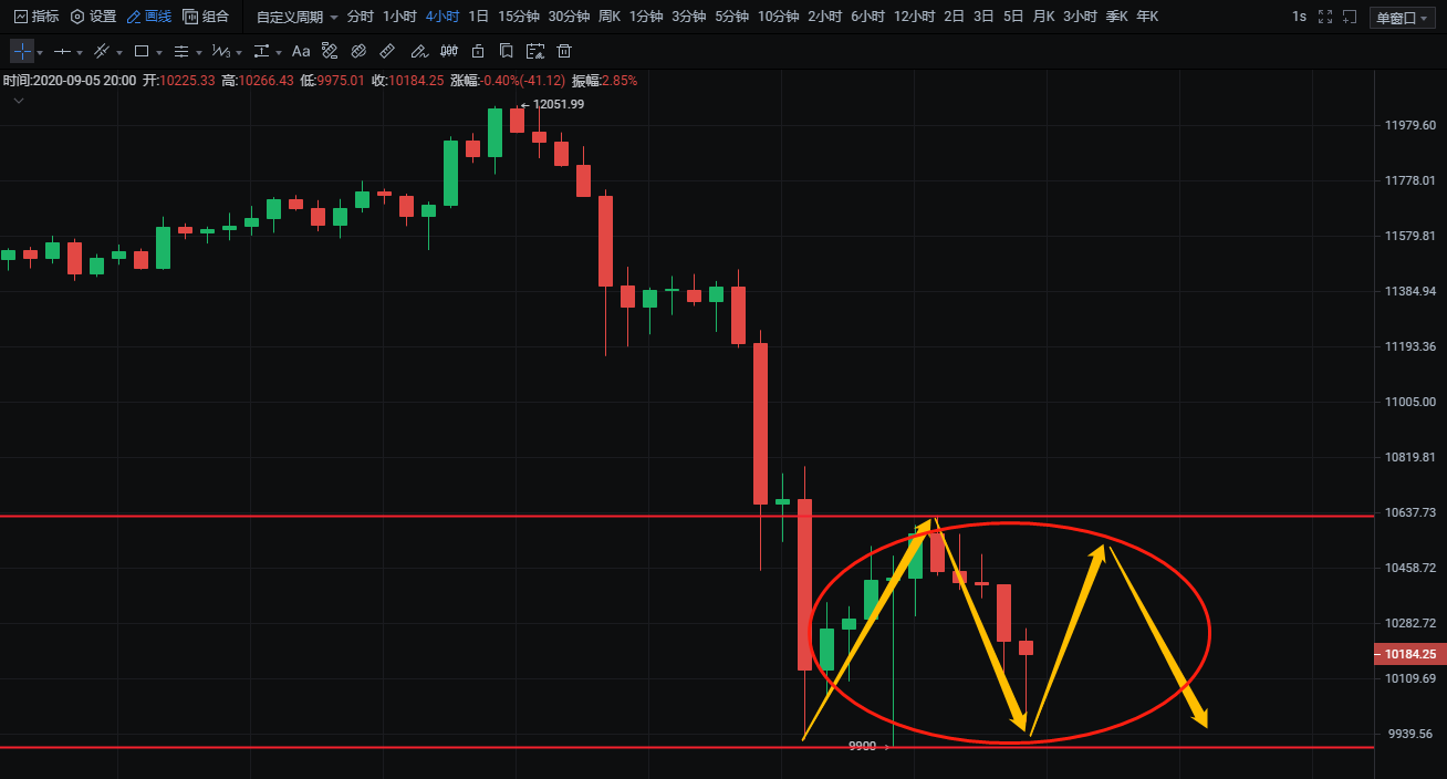2:10000附近多,止损9800,目标10200-10350