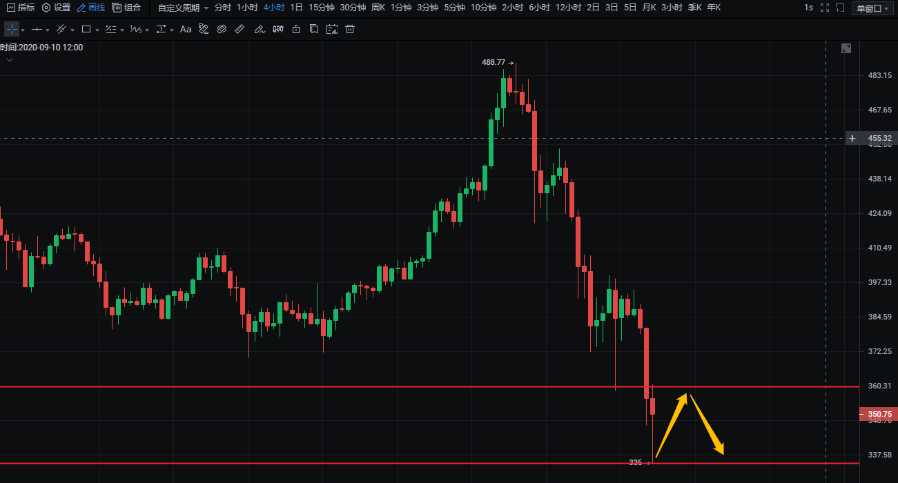 2:下破335看325-320,上破370看380