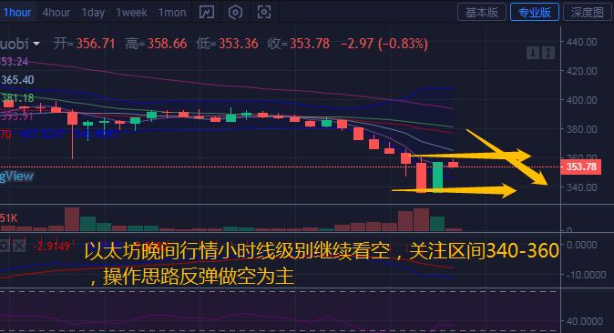 综上:从盘面来看,小时线短期行情币价有反弹趋势,汐柔认为晚间行情大趋势空头为主。晚间操作思路继续反弹做空。关注下方支撑340位置,上方关注360位置压制.操作建议高空低多。