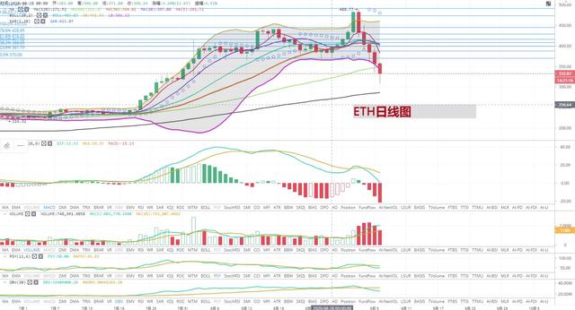 持币者ETH行情分析:相对于比特币的三针探底,迟迟留恋10000关口上方。以太坊就干脆的多。领涨豪横,回落也是也是绝不停留。昨日持币者还说过以太坊400关口压制强烈,今天以太坊的行情就逼近300关口了。结合两者看,领涨以太坊走在前面,回落以太坊也是走在前面了。