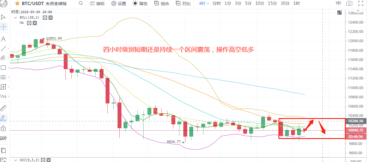 BTC行情分析:比特币凌晨从10165附近开始走回撤,跌至9933低点,回撤的力度还是有点偏弱势,价格靠近震荡区间的上方区域附近。日线级别来看:连续7日走出7连阴,但下降幅度缩小,空头逐渐减弱。布林带向下打开,k线运行在下轨,5日、10日形成死叉向下趋势,5日均线趋向平行。MACD在零轴下方形成死叉向下。四小时来看;布林带开口收缩趋平行,k线在布林带中轨附近运行;5日、10日均线在30日均线下,MACD在零轴下方成金叉延续,日内还行会持续一个震荡盘整。上方压力位10300,下方支撑位9900.