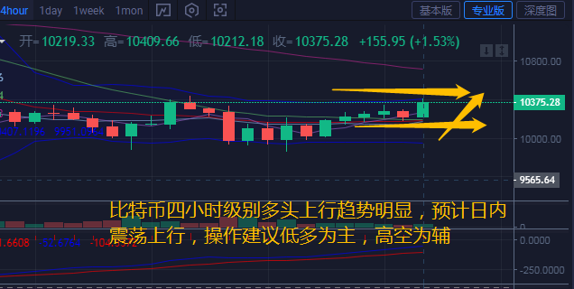 综上:从盘面来看,昨日行情稳定在9800-11250区间宽幅震荡。今日早间行情突破上方10400压制,短期是一个向上试探的走势。汐柔预计日内币价区间震荡上行走势。下方关注10200支撑,关注上方阻力10450-10500附近,操作建议低多为主,高空为辅。