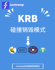 Justswap首发Defi碰撞销毁模式KRB,总量5385223枚,最大流通385223KRB。通过SUNCORNJFIPEARL等Defi代币对KRB进行碰撞销毁;首次碰撞共分为四轮,每碰撞完成一层销毁100万,剩余1385223KRB。其中总流通为385223KRB,剩余100万枚用于Justswap其他DIFI代币进行碰撞销毁或社