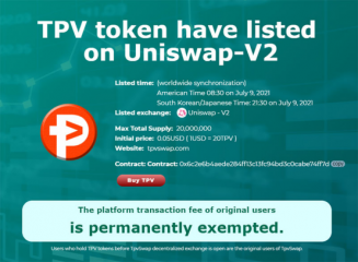 2021-07-10 TPVSwap新Token已上线Uniswap-v2,新的财富机遇? 毕竟新币上线三把火,总会有先机者提前上车。关于TPV的情况,可以参考它:合约地址:0x6c2e6b4aede284ff13c13fc94bd3c0cabe74ff7d