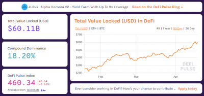 根据DeFi Pulse 数据,截止目前DeFi总市值突破600亿美元,达到600.11亿美元。而在3个月前,DeFi总市值仅为200多亿美元,涨幅惊人。