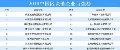 中国移动通信联合会区块链专委会、中关村大数据产业联盟、中国电子商会区块链专委会、链塔智库联合发布2019中国区块链企业百强榜。