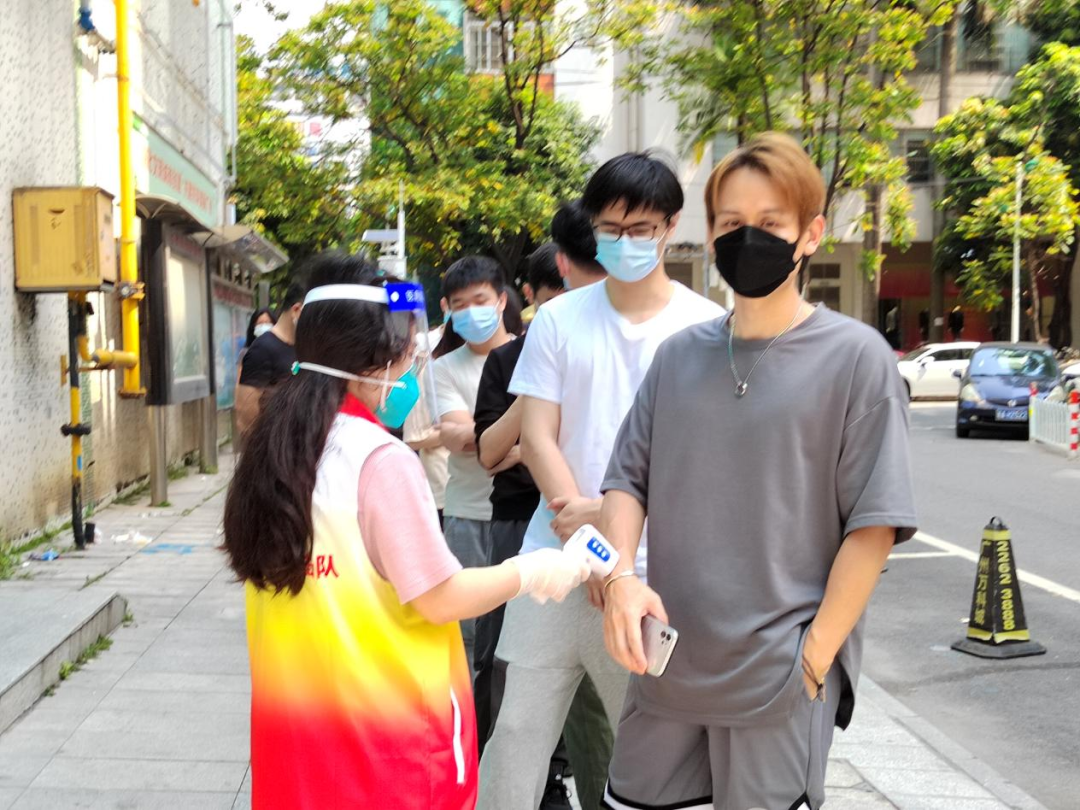 新快报讯 4月22日,广州宣布全市已无中高风险地区,行程卡实现“摘星”。这一轮疫情防控的成果,离不开社会各界的努力与支持,广州市天河区软件和信息产业协会亦积极投身其中。4月12日,该协会全员出动,在天河区多地参与核酸检测志愿服务活动,把投身防控疫情的第一线作为践行初心使命的试金石和磨刀石。 他们是核酸检测的第一关口 “请各位出示穗康