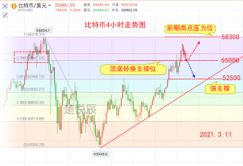 2021-03-11 楚悦辰:3.11比特币市值再破万亿美元大关,能否继续刷新新高? 此前我们有听到过一个说法,当比特币市值达到万亿美元之上的时候,美联储不会放任不管,而上次是直接通过美财长耶伦的口对币价实现了打击,而这次比特币市值再上万亿美元的话,监管部门是否会再次采取行动呢?