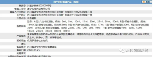 通过企查查查询该产品生产企业济南如意堂医药科技有限公司(以下简称:如意堂公司),其中有一条特别明显的风险提醒信息,2019年,如意堂公司因未按照备案的产品技术要求组织生产被济南市市中区市场监督管理局处以没收查封的冷敷滚珠器,罚款20000元。同时,依据《中华人民共和国行政处罚法》第二十三条规定,责令该单位立即改正上述违法行为。