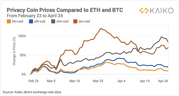 自今年2月份以来,隐私币的表现出色(一直强于比特币)。