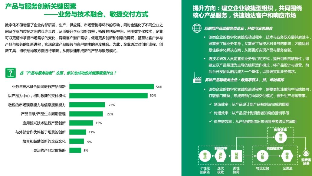 数字化不但增强了企业内部研发、生产、供应链、市场营销等环节的联动,同时也强化了不同企业之间及企业与市场之间的互连互通,从而提升企业创新效率,拓展其创新空间。利用数字化技术,企业可以更精准掌握市场需求的变化,洞察客户潜在需求,促进更多创新和创意的涌现,甚至让客户参与产品与服务的创新进程,实现企业产品服务与客户需求的深度融合。为此,企业通过对创新流程、创新工具、组织结构等方面进行革新,从而快速形成新的产品与服务模式。