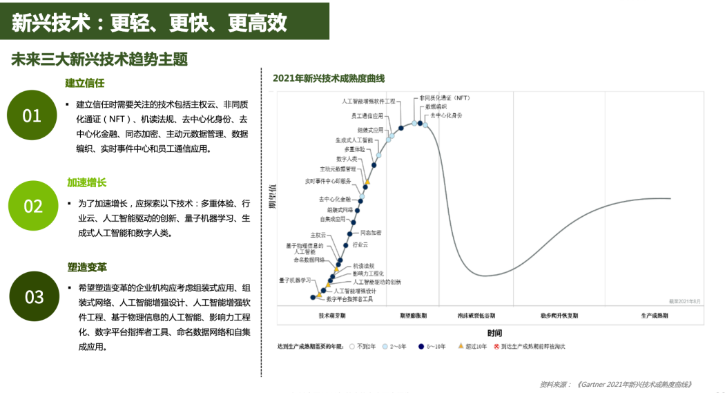 企业引入技术的最终目的还是为了服务于业务,所以技术需要在业务场景中体现其具体价值。因此,企业在拥抱新兴技术时应当综合考虑技术与业务的适配性、技术的前瞻性和成熟度,以及自身的研发与应用能力,不必过分追求高端、全新的技术,而应选择最适合自己的。没有最好,只有最适合。