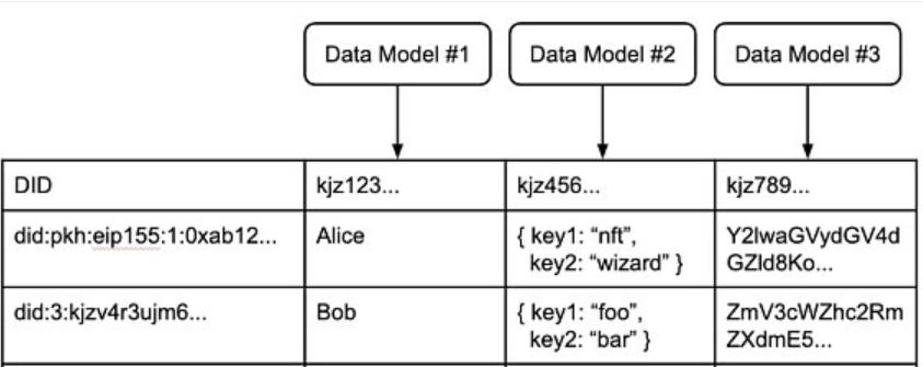 索引:当应用程序定义数据模型时,用户带来他们的标识符。标准索引可以将这些元素组合到一个用户表(或应用程序表)中,以便当用户与应用程序交互(创建数据)时,该信息被适当地编目以供将来路由。这会创建一个易于发现的用户数据记录——映射到数据模型并以加密方式关联到标识符。