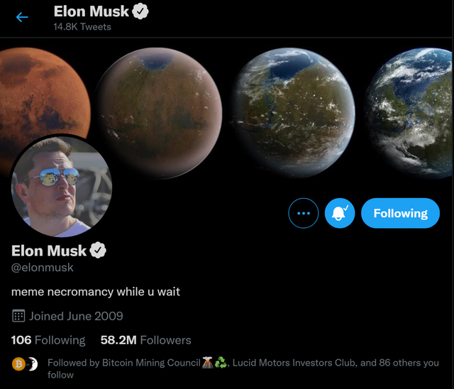 从不回避争议的特斯拉首席执行官埃隆 · 马斯克随后决定加入这场争论,他改变了自己 Twitter 账户上的头像,据称支持 Dogecoin: