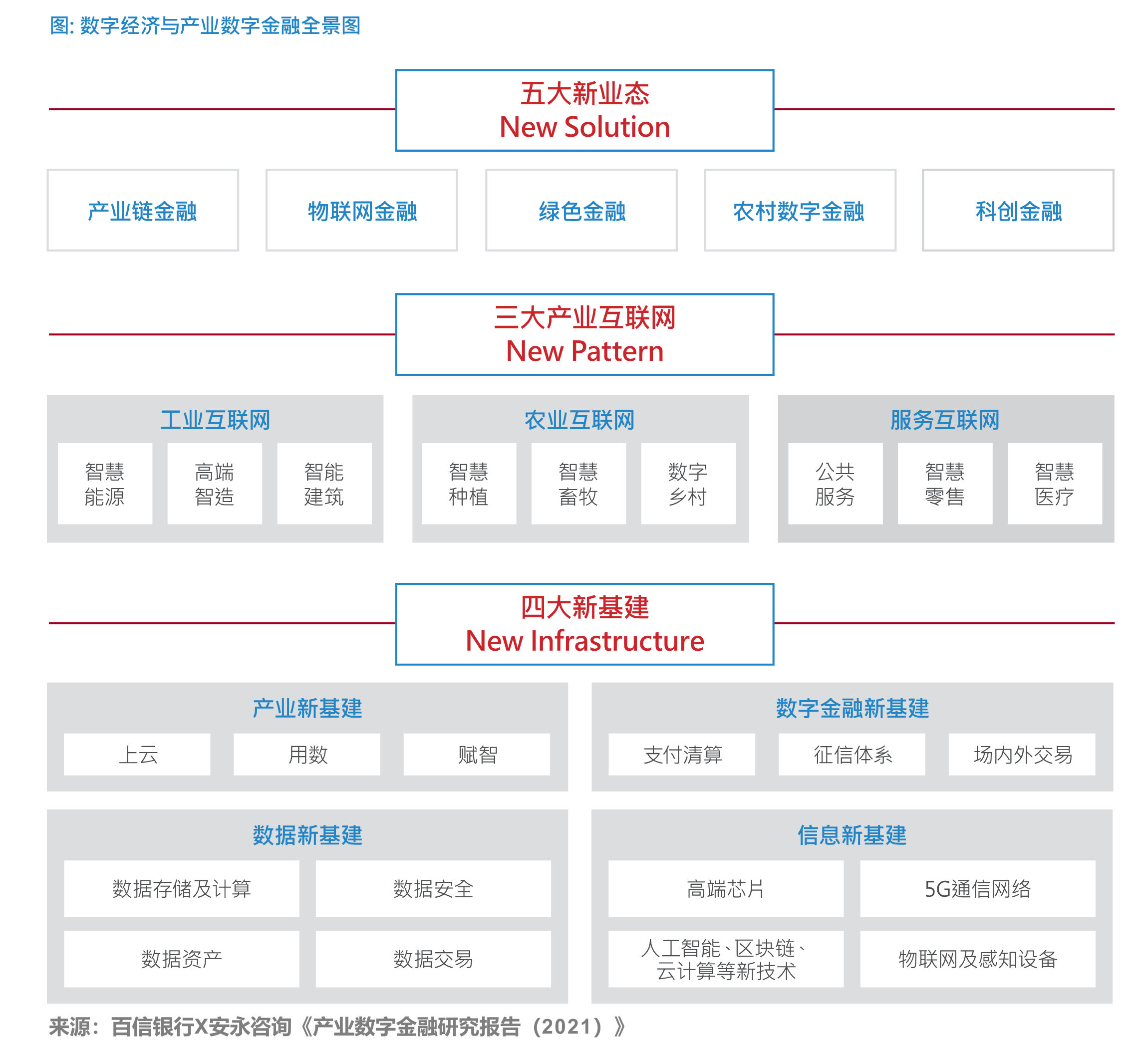 研究报告共分为五大章节,介绍了数字经济发展的时代背景,系统性总结了“435产业数字金融新范式”,涵盖“四大新基建”,“三大产业互联网”,创新提出了产业链金融、物联网金融、绿色金融、农村数字金融、科创金融“五大产业数字金融发展新业态”,并展望了产业数字金融未来发展的八大趋势。