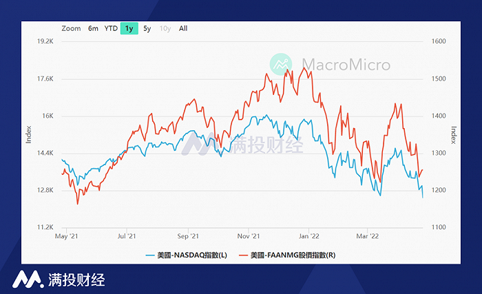 截至2022年4月26日,纳斯达克指数今年已经累计下跌了21%;标普500指数累计下跌了13%;由Meta platform Inc.、苹果公司(Apple Inc.)、亚马逊公司(amazon.com Inc.)、netflix Inc.、微软公司(microsoft Corp.)和Alphabet Inc.组成的“FAANMG”指数累计下跌了17%。按照市值计,FAANMG指数目前占标普500指数的23.8%。