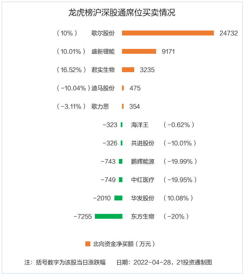 值得注意的是,机构和北向资金共同净买入了歌尔股份、盛新锂能、君实生物等3股;共同净卖出了海洋王、鹏辉能源、东方生物等3股;在华发股份上出现分歧,机构净买入华发股份19.34万元,北向资金净卖出2009.85万元。