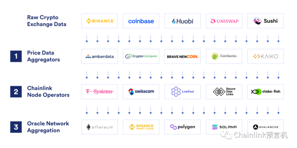 Chainlink Price Feeds采用了多层级的去中心化聚合机制