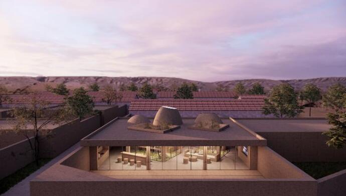 “气膜窑院”中预留的门窗位置作用于建筑最终形态,可实现定制化与个性化设计,不同模块都具有升级服务,满足不同的居住生活需求。采用“模—膜”建造的新型窑院民宿在外观上能融入当地独特的自然环境,展现本土风貌,功能上兼具现代建筑美学与传统窑洞冬暖夏凉的特点。