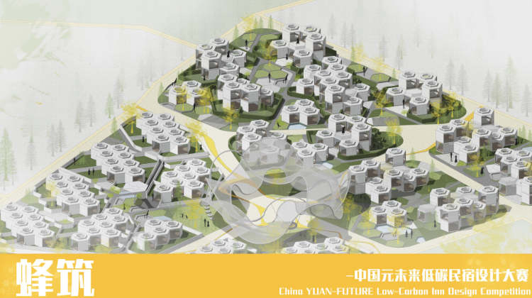 由上海筑骁建筑科技有限公司设计的“蜂筑”,构想了一个可生长的“元未来村落”。“村落有全生命力周期的规划,道路是它的血管,每一个组团都像一个个细胞,每一个空间节点都是充满活力的。”