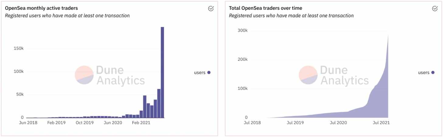对于 NFT 来说,现在还为时尚早。如果目标市场最终是“在网上买任何东西的任何人”(也应该是),并且有超过 20 亿人曾经进行过一笔在线购物的话,那么这个目标市场只有 0.01%买了一个NFT,如果按照OpenSea 的292k 历史记录交易来看的话。