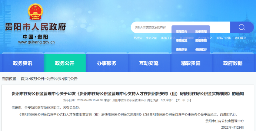 《贵阳市住房公积金管理中心支持人才在贵阳贵安购(租)房使用住房公积金实施细则》已经贵阳市住房公积金管理中心主任办公会审议通过,请遵照执行。