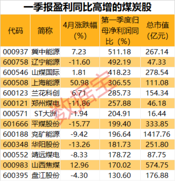 一季度受煤炭价格上涨影响,板块内上市公司普遍实现盈利大幅增长。证券时报 数据宝统计,13只煤炭板块上市公司第一季度实现归母净利润同比增幅超过100%,其中冀中能源、辽宁能源、山煤国际同比增幅在400%以上。