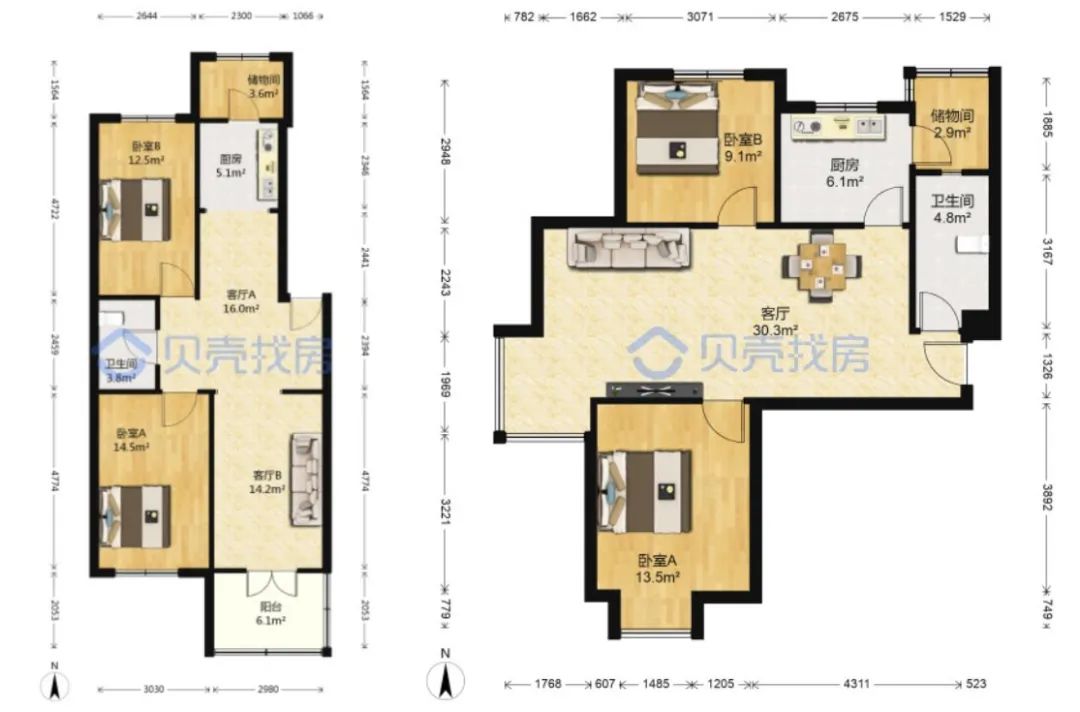 看看下面这两款,一个是96平米的两室,一个是89平米的两室。