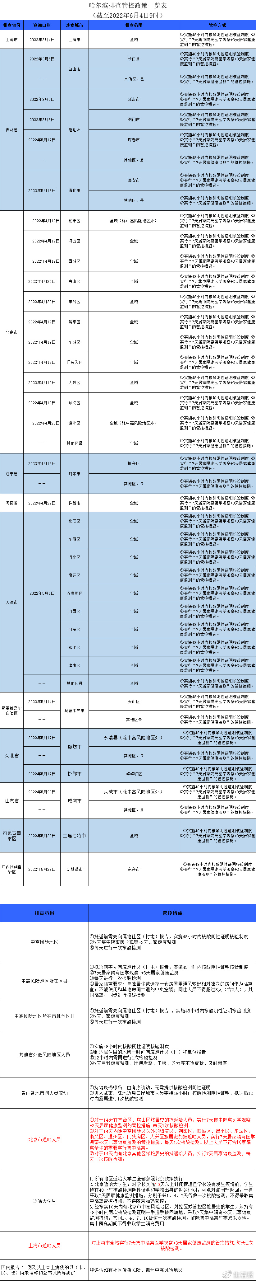 哈尔滨排查管控政策一览表(截至2022年6月4日9时)