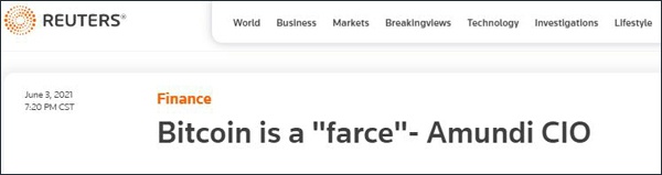 (观察者网讯)据路透社(Reuters)报道,欧洲最大资产管理公司东方汇理(Amundi)的首席投资官帕斯卡尔·布朗克(Pascal Blanque,音译)3日表示,比特币等加密货币是一场“闹剧”,是金融市场正在形成的泡沫的征兆,他呼吁投资者青睐人民币。
