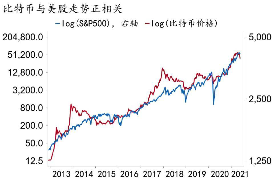 「数字黄金」的说法,在我看来更像是营销用语,值得斟酌。黄金作为贵金属有着实际的用途,例如制作珠宝、芯片等,而比特币则毫无内在价值。即便作为投资资产,黄金由于其市值高、流动性佳、波动性小,而且与股票走势没有太大的关联,在高度不确定的时期证实为避险资产。而比特币的表现则更像是一种风险资产,5 月份的市场波动充分证明,比特币实在是无险可避。从更长的时序上看,比特币价格走势与同为风险资产的股票(特别是小市值股票)高度相似(图 4)。