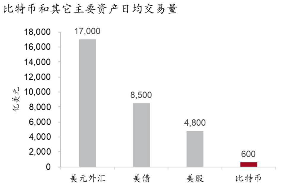 图 3:比特币日均交易量远小于其他大类资产(资料来源:BIS、CBOE、SIFMA、招商银行研究院)