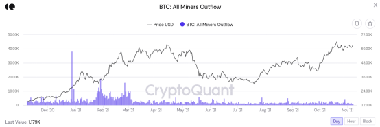 比特币矿工也继续表现出坚定持有的决心,并未大量出售BTC。从上图可见,矿工钱包的流出量在最近几周和几个月保持平稳(比今年第一季度的流出量低得多)。