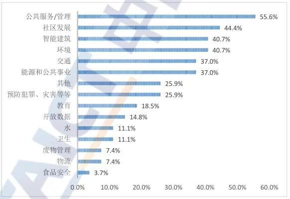 从中国信通院今年在全球征集到的实践案例来看,数字孪生城市项目中涉及公共服务或管理、社区发展、智能建筑应用的项目占比位列前三,环境、交通紧随其后。