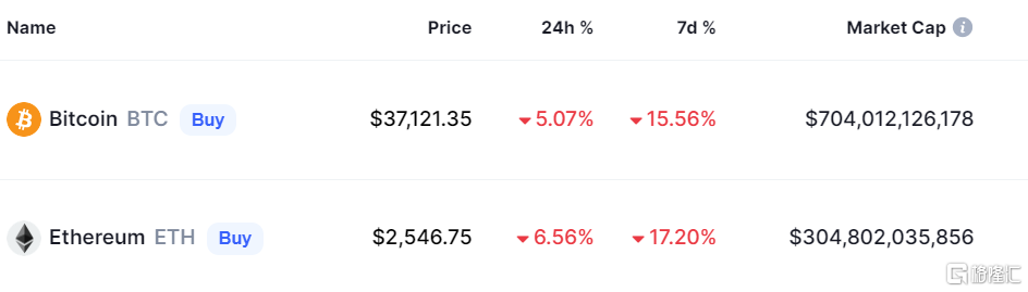 美股异动|区块链概念股大跌比特币以太坊24小时内跌超5%