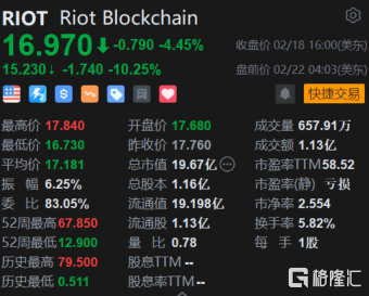摘要: 格隆汇2月22日丨Riot Blockchain(RIOT.US)跌10.25%,Marathon Digital(MARA.US)跌10.93%,coinbase(COIN.US)跌6.91%。俄乌局势恶化,俄罗斯总统普京昨日签署总统令,承认"顿涅茨克人民共和国"和"卢甘斯克人民共和国"独立。随后,欧盟宣布将对俄罗斯实施制裁。欧盟委