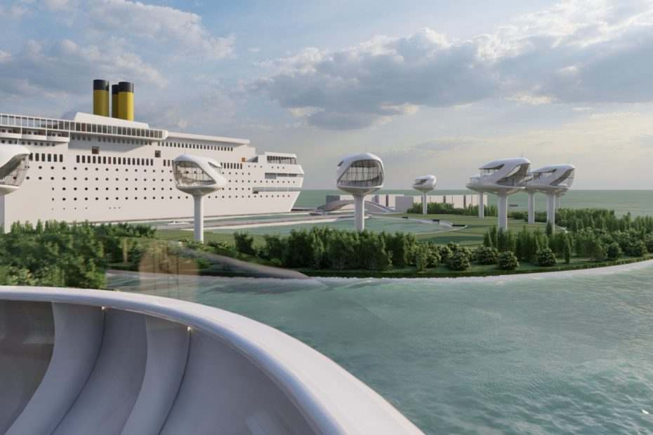 第二次尝试:在巴拿马开发海荚项目海上家园运动并没有就此消亡。2019年,罗蒙特、科赫和埃尔瓦托夫斯基将公司迁至巴拿马,巴拿马政府表示愿意支持他们的下一个项目“海荚”(SeaPod)。这一项目将建成独立的漂浮房屋,房屋由一根柱子和一个三脚架状的基座支撑,基座位于水面以上三米处。房屋设计者科恩·奥尔修斯(Koen Olthuis)是一位荷兰“水上建筑师”,专门从事水上建筑的设计。