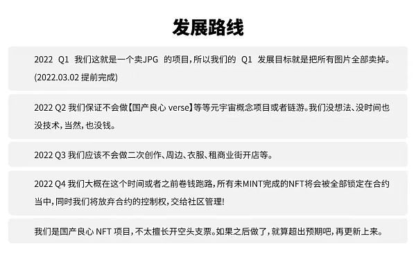 再看国产良心的发展路线。只能说这个团队的运营实在是太厉害了,在这样的发展路线图下,还能提前完成卖JPG的目标。只能送两个字:漂亮!
