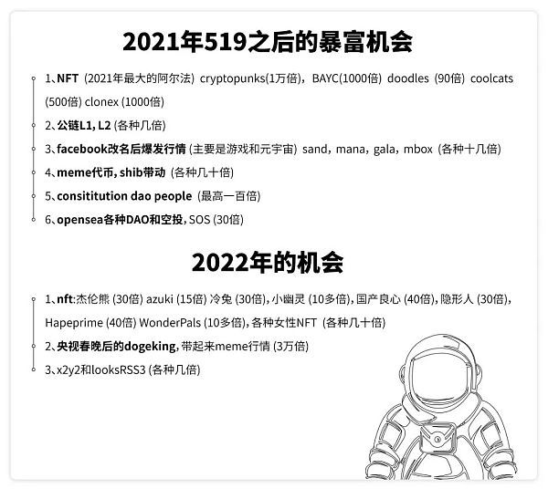 前段时间,这张所谓2021和2022暴富机会总结图在中文社区中疯狂流传。